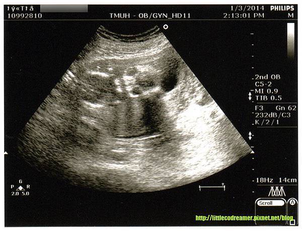 相隔一個月不見小CO,加上想讓媽媽看看寶貝外孫的近況,還是決定自費照超音波。小CO心跳強力穩健,也有按照進度長大,我先前因害喜而對營養不足的擔憂可以暫時拋開。透過超音波已經可以清楚看到成型的頭骨,但此週數尚未開始長臉部的肉。看起來有那麼一點外星人的味道,即使如此我還是覺得小CO很可愛。