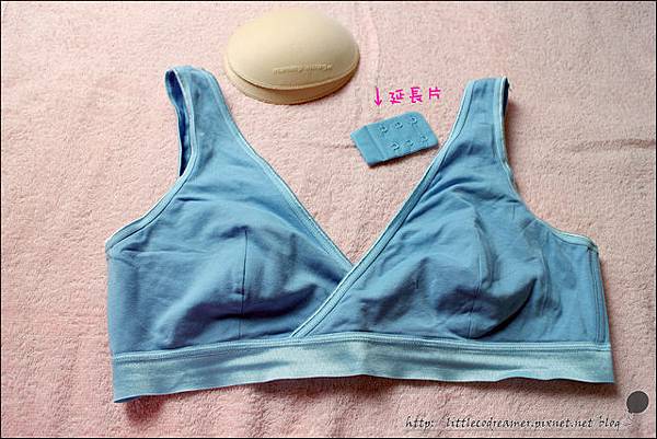在懷孕期間當原本的內衣不合穿時,就可以考慮添購孕哺期都可以穿的內衣。這一款附有乳墊和延長片。乳頭過度敏感時,可以把乳墊平整塞入內襯裡加強保護。延長片有三段可以調整,是輕鬆應付孕哺期乳房SIZE變化的好幫手。(若有使用免洗防溢乳墊就不再使用內衣乳墊。)