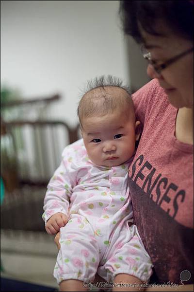 ↑在奶奶溫暖的懷抱中,剛開始還不太熟悉。經過奶奶有經驗的逗弄,玩開之後就笑出聲了!