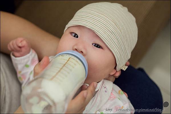可能眼前的一切都如此新鮮,即使喝奶時間就快到了,小Co並沒有像往常一樣提早十五分鐘哭著討奶。就算ㄋㄟㄋㄟ送到嘴邊,也不會跟平時一樣因為不專注而推走奶瓶,就這麼順順喝。真是乖的不可思議啊!