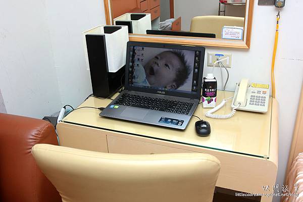 ↑梳妝台。月子中心提供無線網路,自備筆電就可以上網。