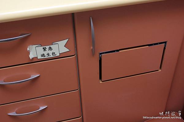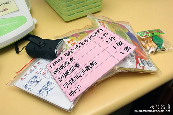 第一層抽屜放著「緊急逃生包」,護理師說我們這裡位於12樓,因此「緊急逃生包」很重要,也有打開來逐項介紹使用說明。