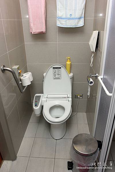↑免治馬桶,可以用溫水洗淨屁屁,很舒服。馬桶兩旁也有緊急呼叫鈴和電話,可以隨時和嬰兒室連絡。